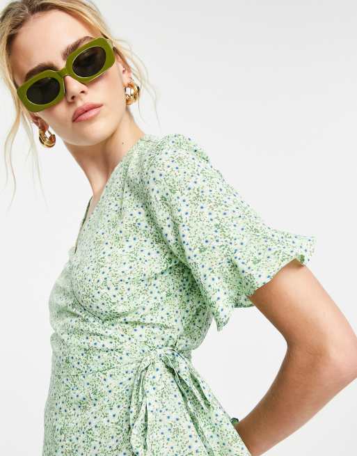 Vero Moda - Grøn slå-om-bluse med flæsedetaljer og blomstermønster