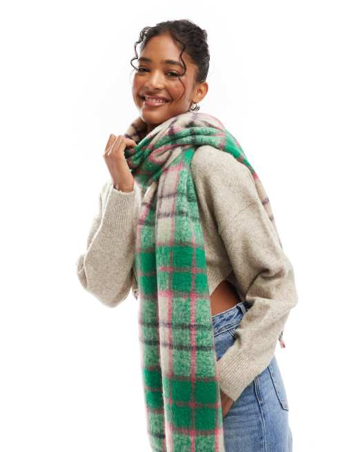 Vero Moda - Grøn-ternet og blødt halstørklæde i boucle