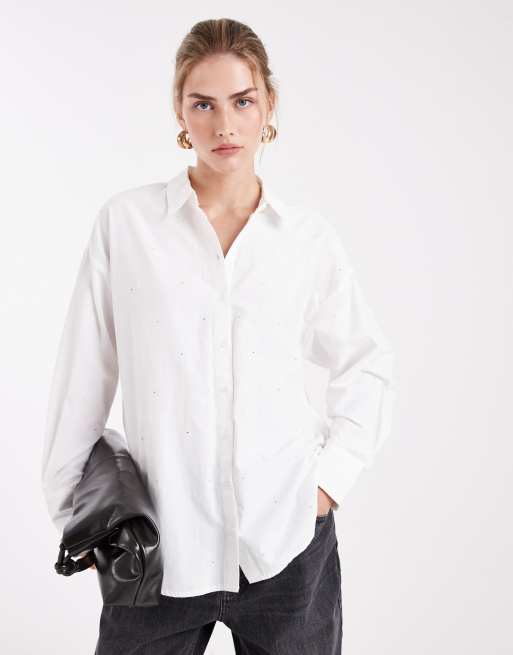 Vero Moda - Hvid oversized skjorte i glat stof med gennemgående rhinstensudsmykning