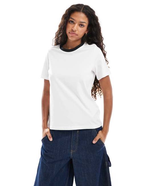 Vero Moda - Hvid T-shirt med kontrastfarvet hals