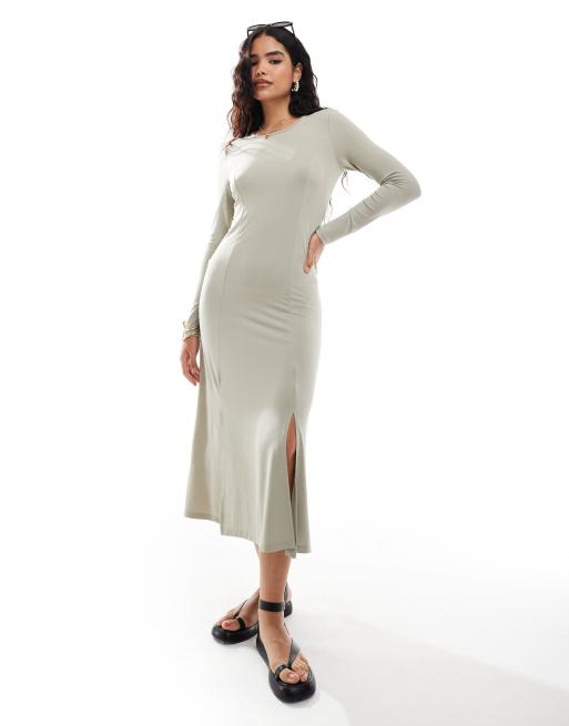 Vero Moda - Langærmet maxikjole med sømdetaljer i beige