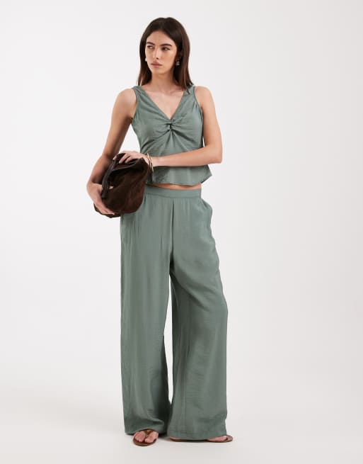 Vero Moda - Laurbærgrønne bukser med brede ben - Del af sæt