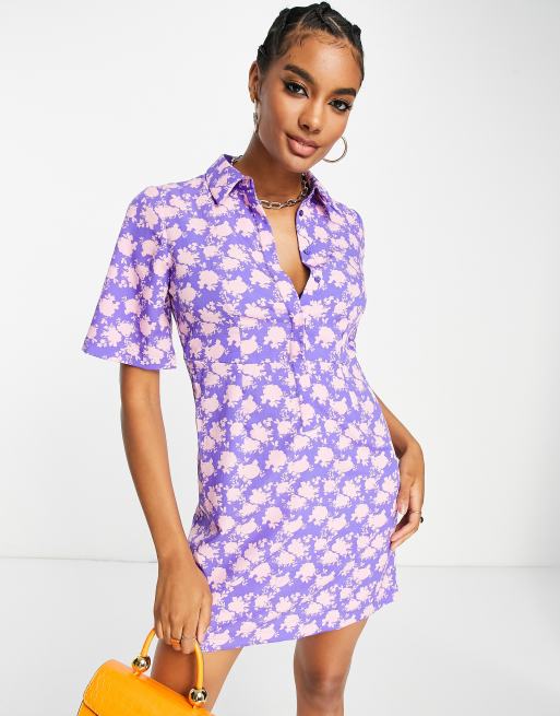 Vero Moda - Lilla mini-skjortekjole med blomstermønster