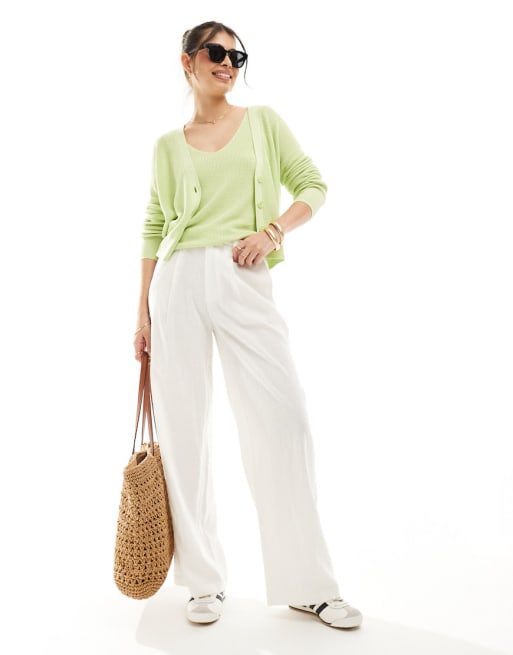 Vero Moda - Limegrønt sæt i let strik med cami-top og cardigan