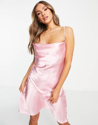 Vero Moda - Lyserød midi-natkjole i satin med vandfaldsudskæring