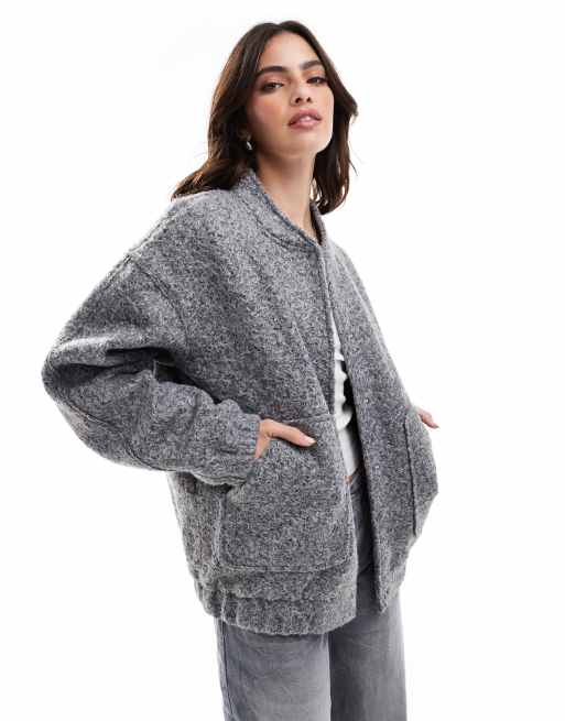 Vero Moda - Mellemgrå løstsiddende bomber-jakke med tekstur