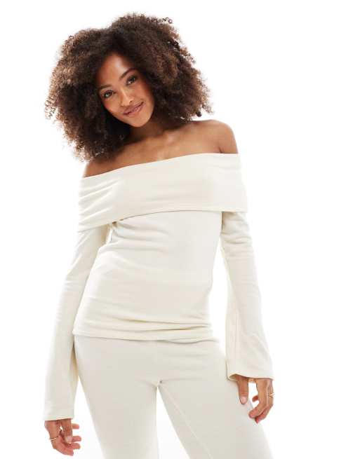 Vero Moda - Mix og match - Meleret cremehvid superblød top med offshoulder-snit