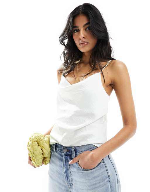 Vero Moda - Råhvid tekstureret camisol i satin med vandfaldsudskæring