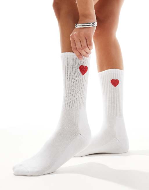 Vero Moda - Ribstrikkede sportssokker med hjerteprint i hvid