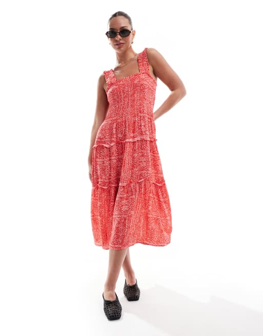 Vero Moda - Rynket cami-midikjole med rødt print