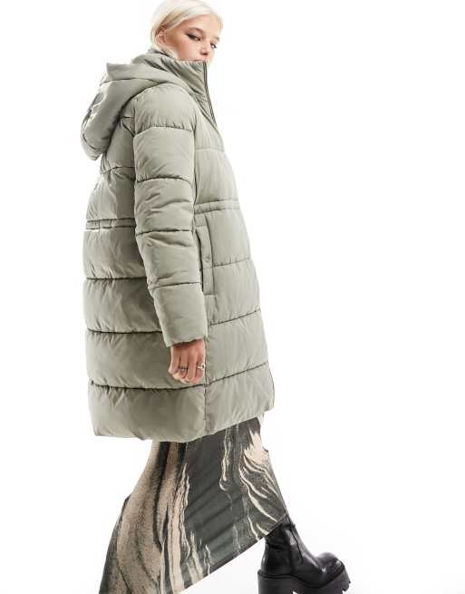 Vero Moda - Salviegrøn longline-dynefrakke med hætte