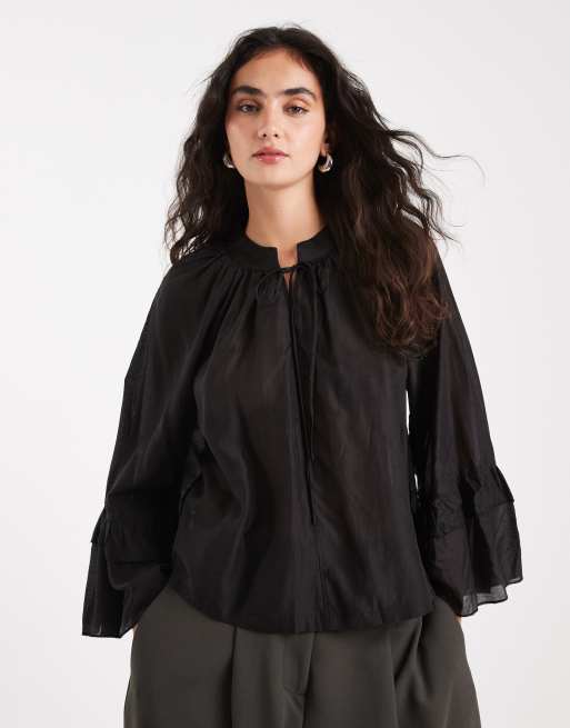 Vero Moda - Sort boho-bluse med overdrevne flæseærmer
