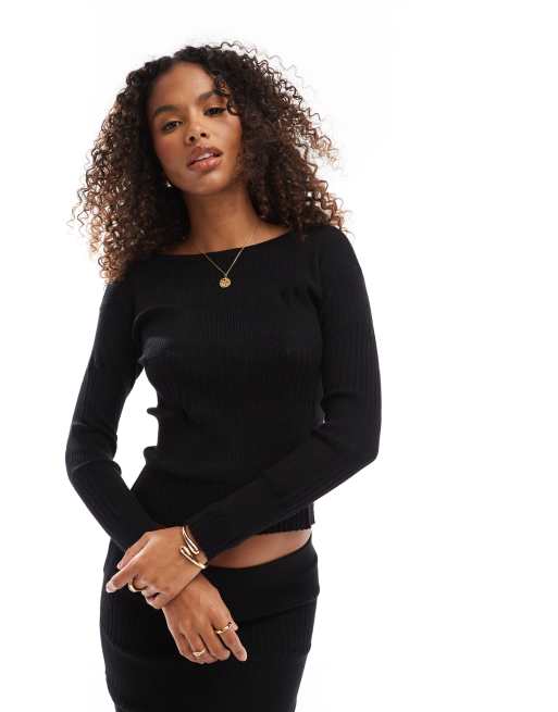 Vero Moda - Sort sæt med midinederdel og langærmet striktop med panelsyninger