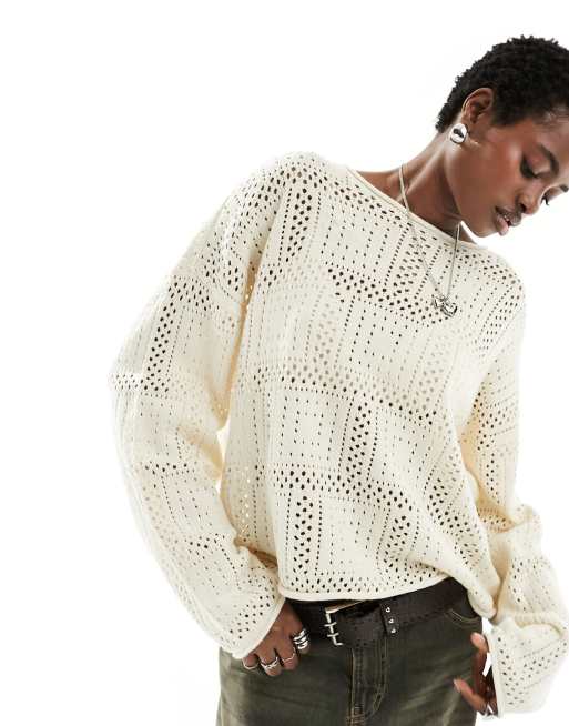 Vero Moda - Strikket trøje med hæklet patchwork-design i beige