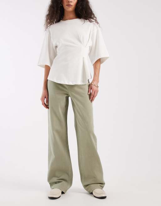 Vero Moda - Tessa - Støvede grønne højtaljede jeans med brede ben