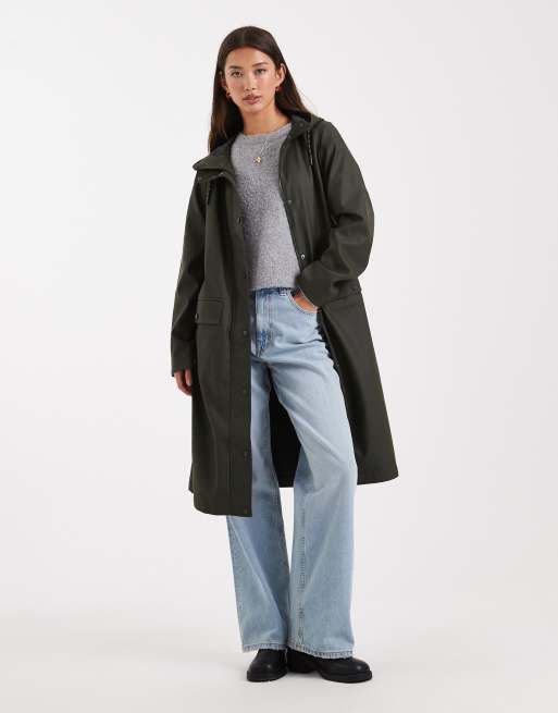 Vero Moda - Tørvegrøn longline regnfrakke med hætte