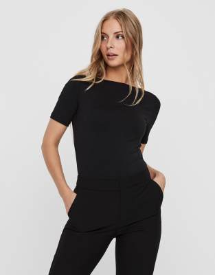 Vero Moda - Tætsiddende T-shirt med bådudskæring i sort