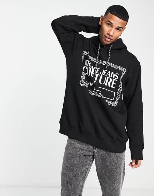Versace Jeans Couture - Sort oversized hættetrøje med 'piece'-logo