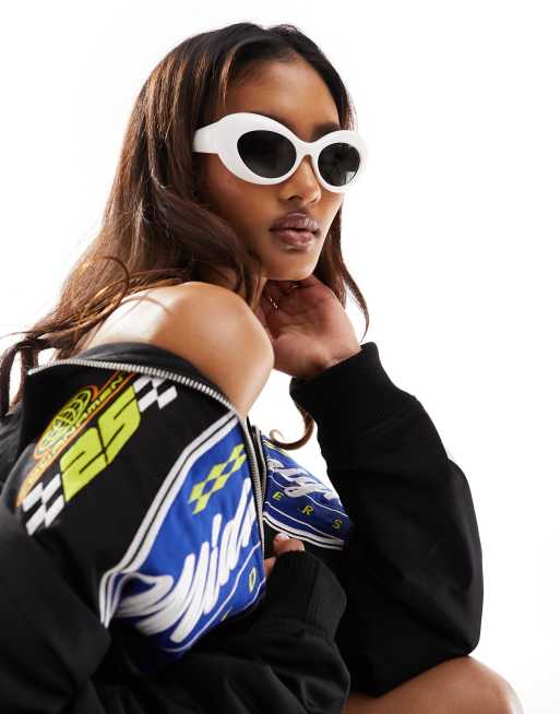 Versace - Skrå runde solbriller i hvid