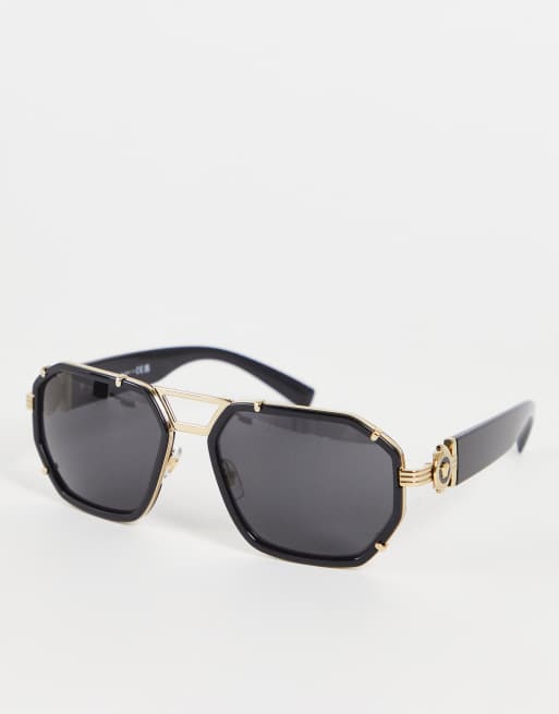 Versace - Sorte aviator-solbriller med guldfarvede metaldetaljer