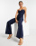 Vesper - Marineblå bandeau-jumpsuit med brede ben
