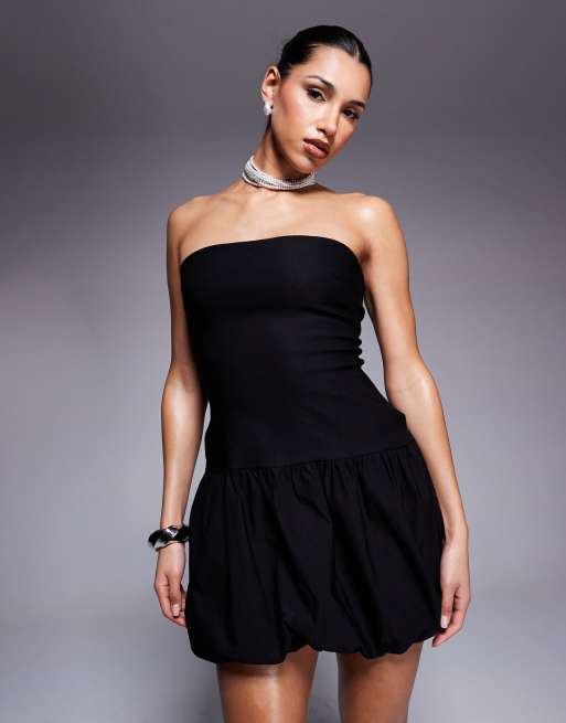 Vesper - Sort bandeau-minikjole med sænket talje og boblekant i bengalin