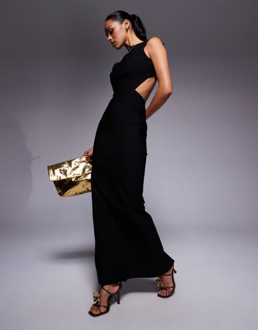 Vesper - Sort maxikjole i bengalin med åben ryg med bindedetalje