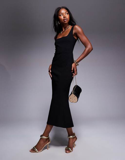 Vesper - Sort ærmeløs midikjole med firkantet hals og fishtail-snit i bengalin