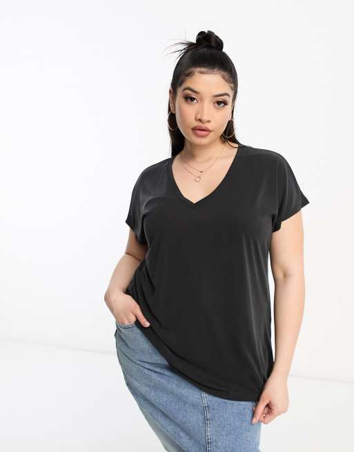 Vila Curve - Tætsiddende T-shirt med V-hals i koksgrå