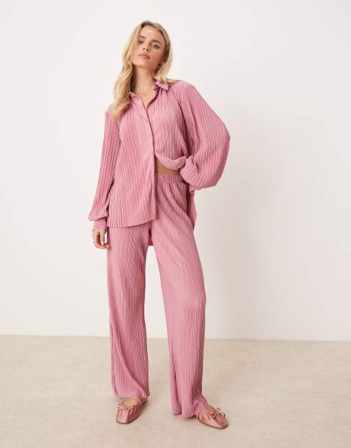 Vila Petite - Støvet lyserøde bukser med vide ben og plisseringer - Del af sæt