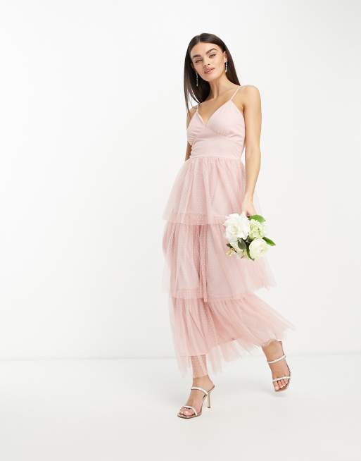 Vila - Brudepiger - Lyserød maxikjole med lagdelt nederdel i tyl