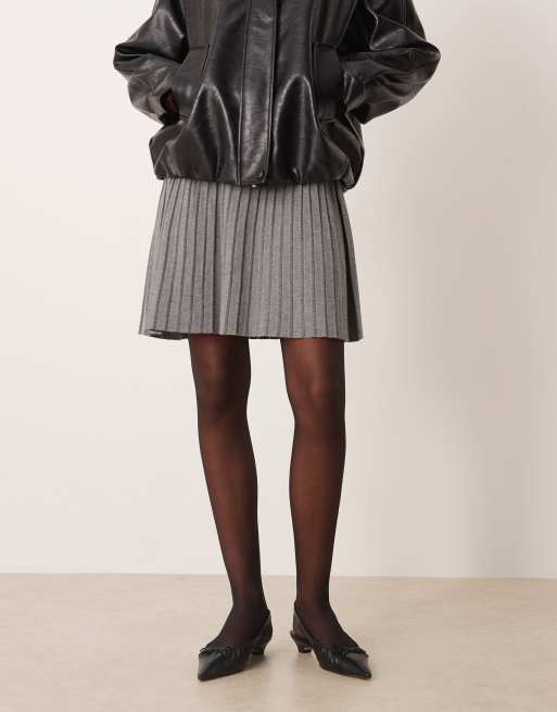 Vila - Gråmeleret strikket mininederdel med plisseringer