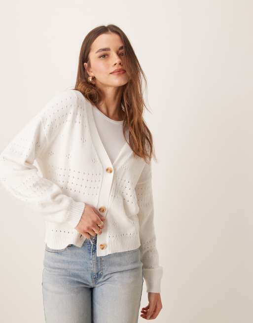 Vila - Hvid strikket cardigan med blouson-ærmer og mønster