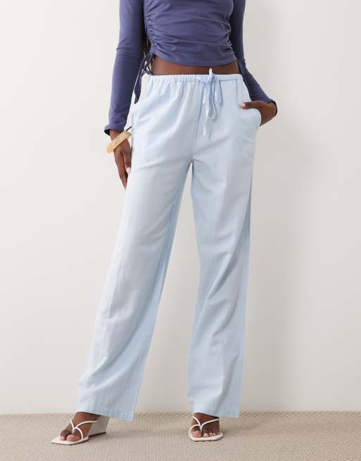 Vila - Lyseblå bukser i hørblanding med bindetalje og brede ben