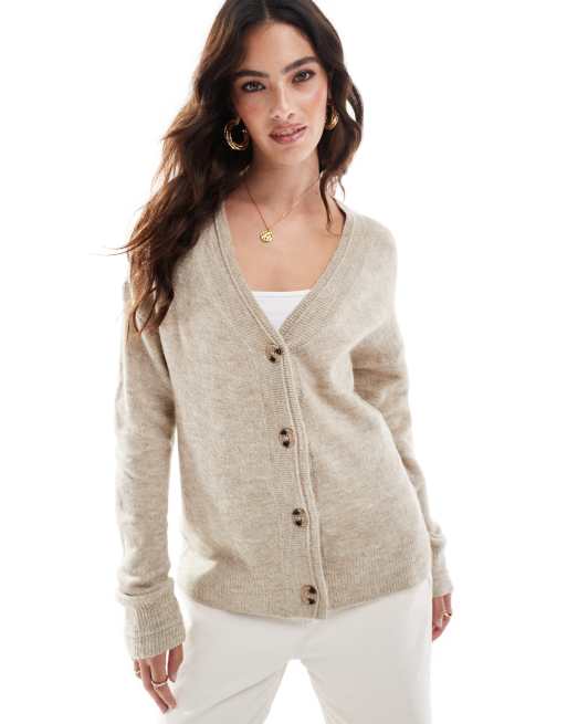 Vila - Naturfarvet meleret cardigan med knapper