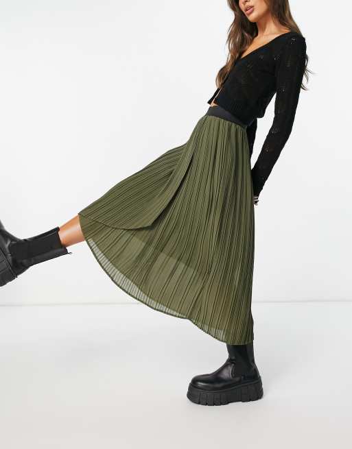 Vila - Plisseret midinederdel i grøn