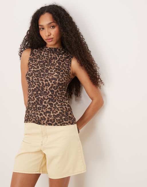 Vila - Ærmeløs top med ståkrave og leopardprint