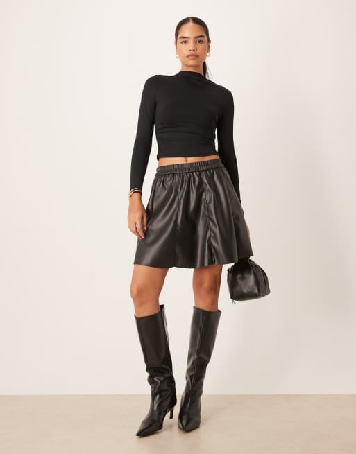 VILA - Sort flagrende mininederdel i imiteret læder