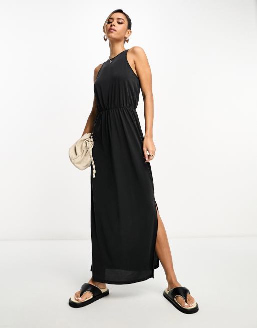 Vila - Sort maxikjole med racerhals og slidser i siderne