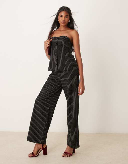 VILA - Sort sæt med habitvest med bandeau-detalje og bukser med vide ben og nålestriber