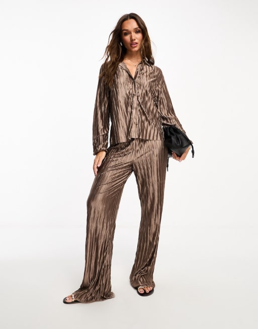 Vila - Sæt med plisseret skjorte og bukser i gråbrun
