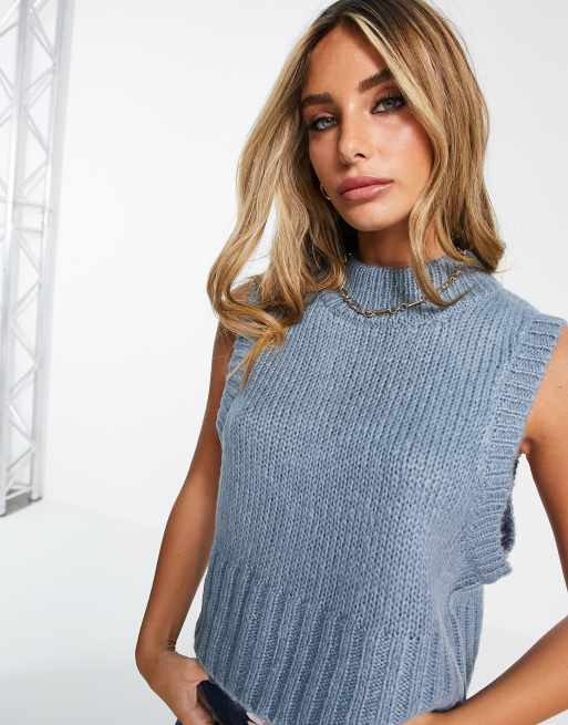 Vila - Strikket ærmeløs vest i blå