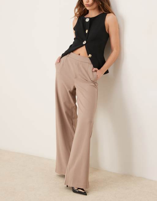 VILA - Svampebrune bukser med høj talje og vide ben