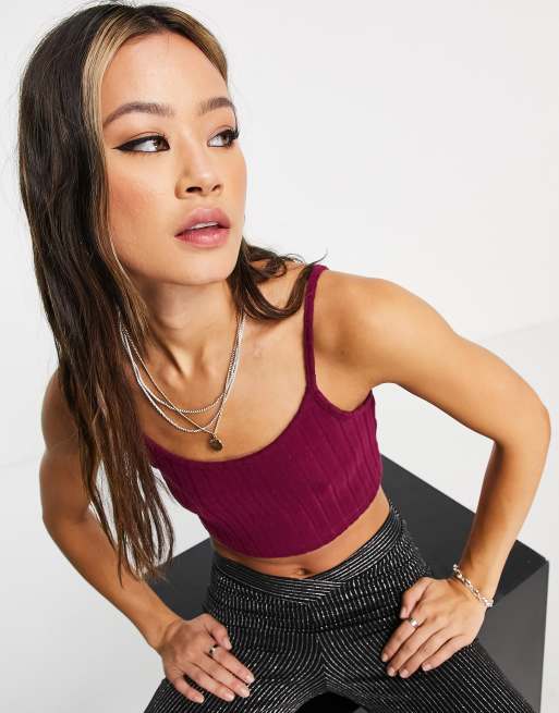 Vila - Vinrød ribstrikket camisol - Del af sæt