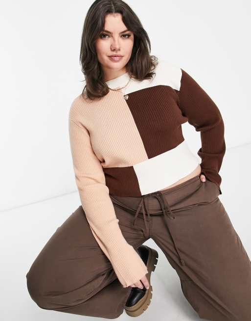 Violet Romance Plus - Ribstrikket cropped trøje med farveblok