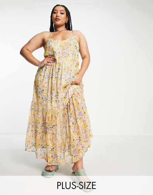 Violet Romance Plus - Trapez-midikjole med blomstermønster