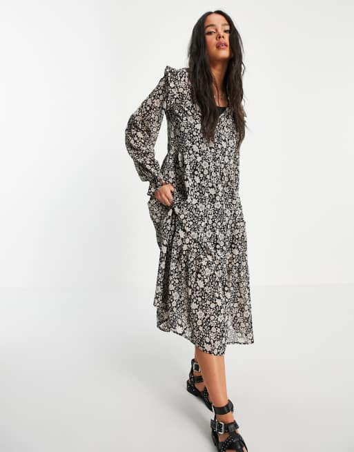 Violet Romance - Blomstret, lagdelt midaxi-kjole med bindebånd i halsen