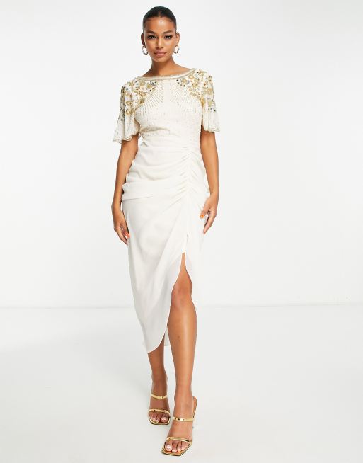 Virgos Lounge - Midikjole med udsmykket overdel i hvid og guld
