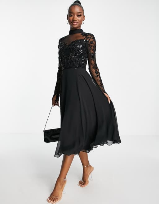 Virgos Lounge - Sort midiskaterkjole med udsmykket top