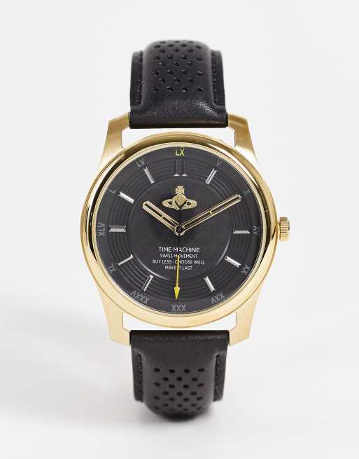 Vivienne Westwood - Orb - Armbåndsur med logo og rem i sort læder